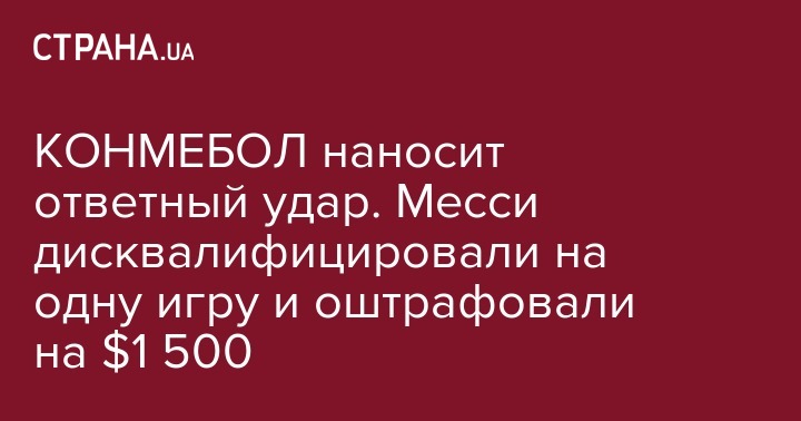 КОНМЕБОЛ наносит ответный удар. Месси дисквалифицировали на одну игру и оштрафовали на $1 500