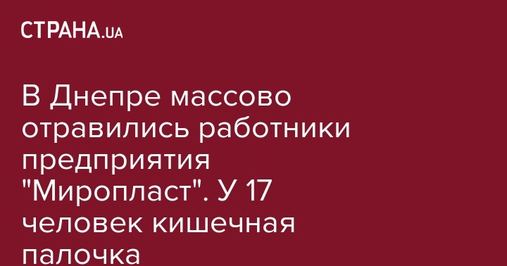 В Днепре массово отравились работники предприятия "Миропласт". У 17 человек кишечная палочка