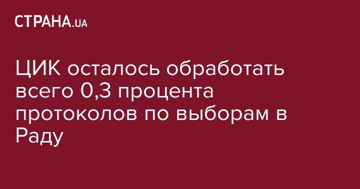 ЦИК осталось обработать всего 0,3 процента протоколов по выборам в Раду