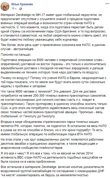 "Подготовка операции на 9000 человек с оперативной (ключевое слово - оперативной) доставкой на восток Украины - это только и исключительно аэромобильная доставка с посадкой на местных аэродромах и дальше выдвижением на технике (которую тоже надо доставить по воздуху).