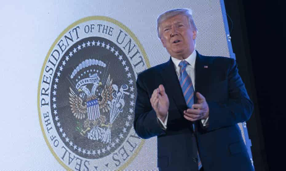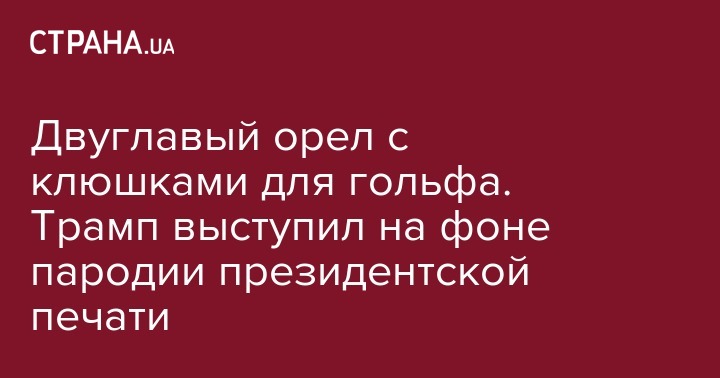Дональд Трамп стал выступать с речью на мероприятии организации Turning Point и на экране за ним появилась президентская печать, которая на первый взгляд была похожа на настоящую, однако была изменена. В частности, вместо орла с одной головой на печати был изображен двуглавый, а в когтях он держал не стрелы, а набор клюшек для гольфа.
