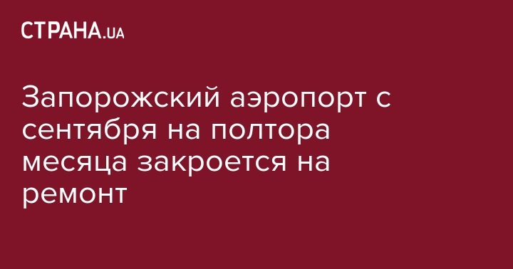 Ремонт начнется 2 сентября с 09:00 по местному времени. Работы будут проводиться на искусственной взлетно-посадочной полосе запорожского аэропорта.