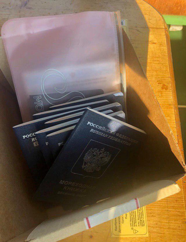 Судя по фото паспортов, которые опубликовал на своей странице в Facebook главный военный прокурор Анатолий Матиос, на борту танкера - семь или восемь моряков.