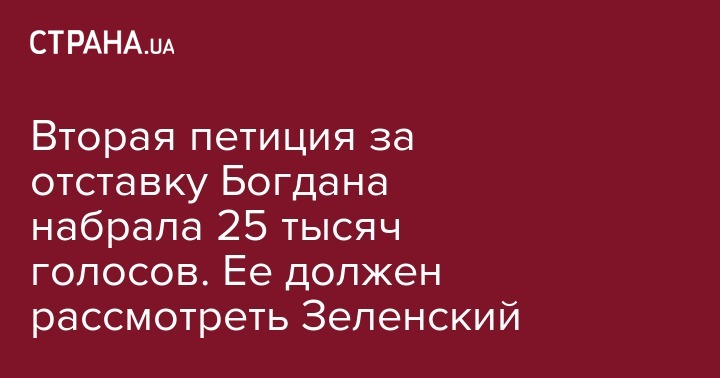 Вторая петиция за отставку Богдана набрала 25 тысяч голосов. Ее должен рассмотреть Зеленский