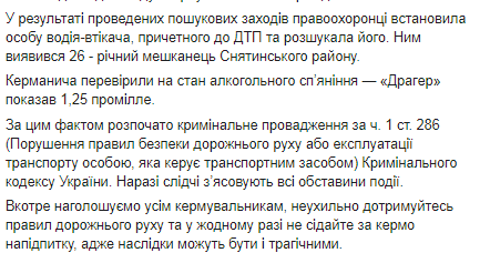 Однако в итоге правоохранители нашли 26-летнего жителя Снятинского района, который стал виновником столкновения. По результатам проверки содержание алкоголя в крови составляло 1,25 промилле.