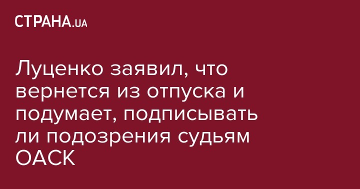 Генеральный прокурор Юрий Луценко заявил, что 31 июля вернется к работе и решит, подписывать ли подозрения судьям Окружного административного суда Киева, где недавно прошли обыски.