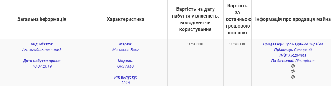 В права собственности Гелетей вступил 10 июля. Автомобиль был выпущен в 2019 году. А купил его Гелетей не в автосалоне, а у частного лица. Продавцом указана Семергей Людмила Викторовна.