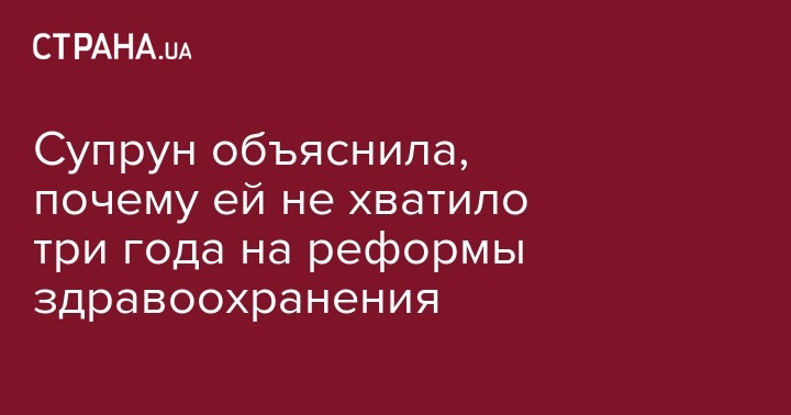 Супрун объяснила, почему ей не хватило три года на реформы здравоохранения