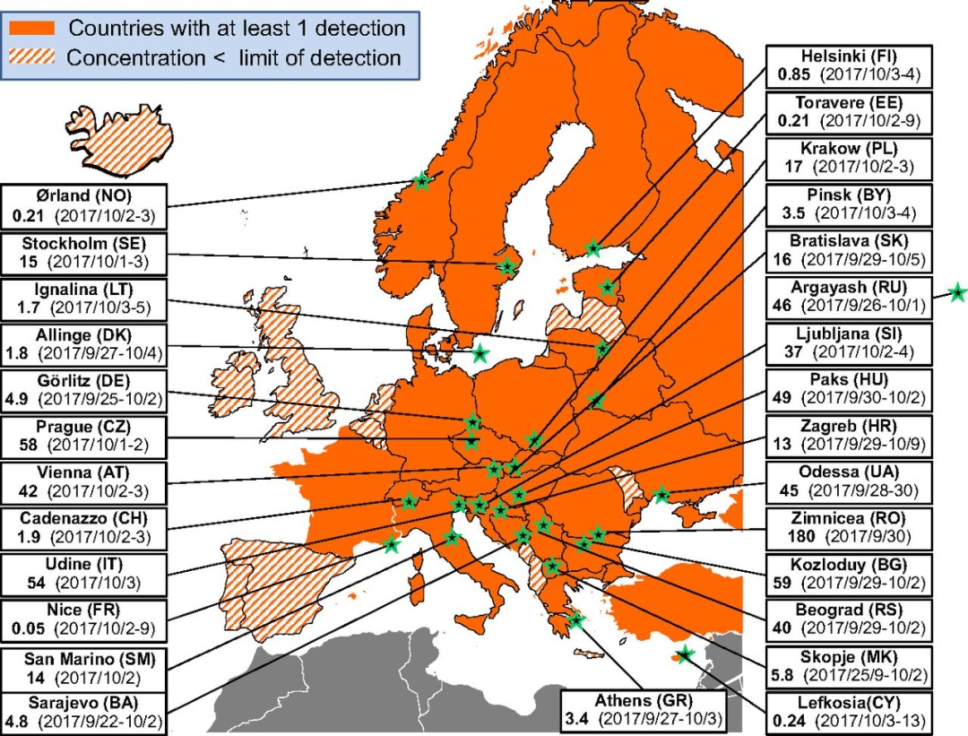 Отметим, что речь о событиях октября 2017 года, когда в центральной части Европы несколько недель был повышен радиационный фон.