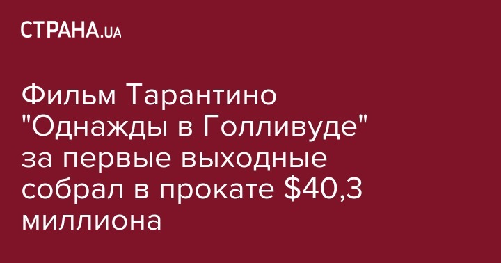 Новый фильм Квентина Тарантино "Однажды в Голливуде", который в Украине будут показывать с 15 августа, за первые выходные в прокате собрал 40,3 миллиона долларов. Об этом пишет Deadline.