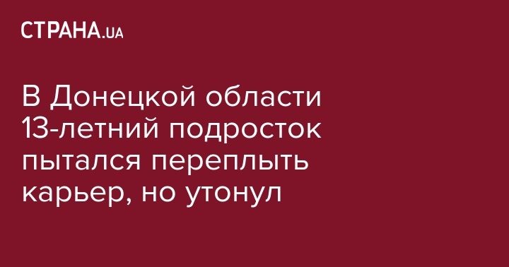 В Донецкой области 13-летний мальчик пытался переплыть карьер, но утонул на его середине, так как ему не хватило сил. Об этом сообщает Отдел коммуникации ГУ НП в Донецкой области.