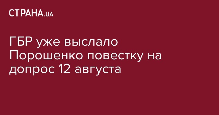Экс-президента Петра Порошенко, который вместе с семьей 28 июля покинул Украину, уже вызвали на допрос в Государственное бюро расследований - на 09:30 12 августа. Об этом пишут "Украинские Новости"