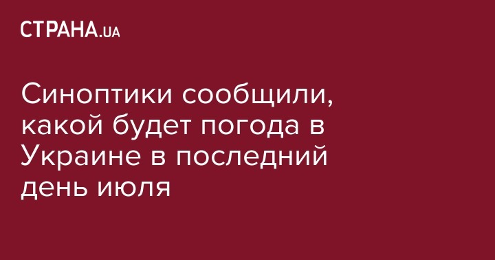 В среду, 31 июля, на большей части Украины ожидаются дожди и грозы, сухо и солнечно днем будет лишь на севере и частично на западе страны.