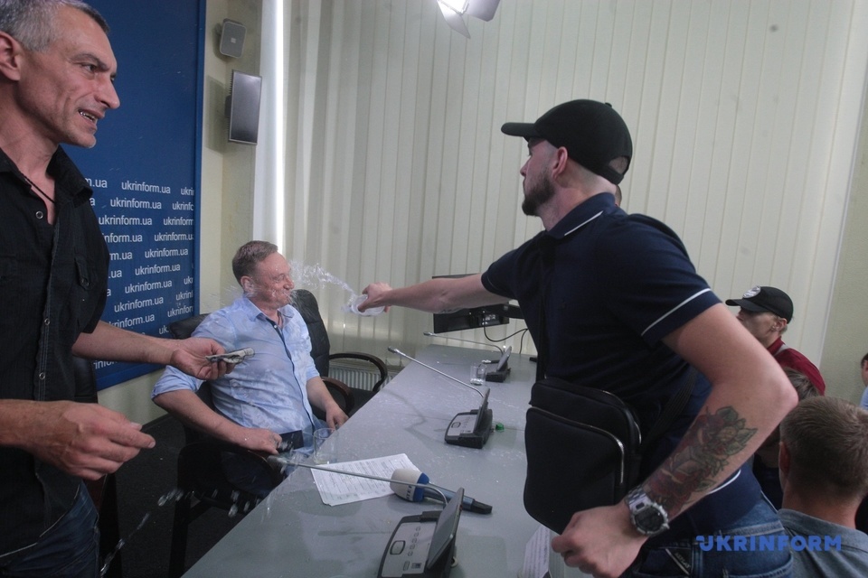 Напомним, во вторник, 30 июля, в Укринформе молодчики в футболках организации "Традиция и порядок" сорвали пресс-конференцию, посвященную возможным фальсификациям в округе №50 в Покровске в Донецкой области. В частности, они во время пресс-конференции выбили входную дверь в зал Укринформа и вбежали с криками "Сепаратист Аксенов!", "Ганьба", после чего облили водой и забросали яйцами кандидата в депутаты Андрея Аксенова.