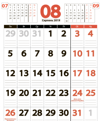 В августе в Украине на официальном уровне отмечают День независимости, который является выходным днем, поэтому в этом месяце отдыхаем на один день больше.