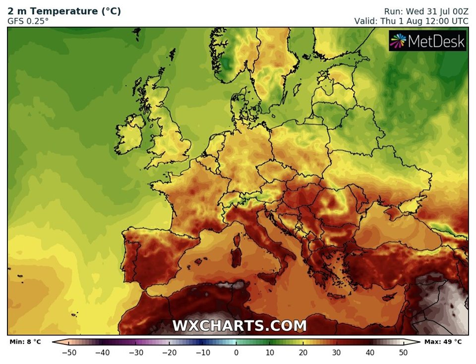 По ее словам начало нового месяца ожидается с последующим снижением температуры воздуха. В четверг в течение дня в Украине предполагается +22...+26 градусов, в Черниговской, Харьковской и Сумской области +17...+22 градуса, лишь на юге и Закарпатье - теплее: +25...+29 градусов. По данным синоптика, дождей 1 августа почти не будет, вероятны осадки в Карпатах и прилегающих регионах. Также увеличится облачность с влажностью на севере Украины. В остальных областях будет солнечно.