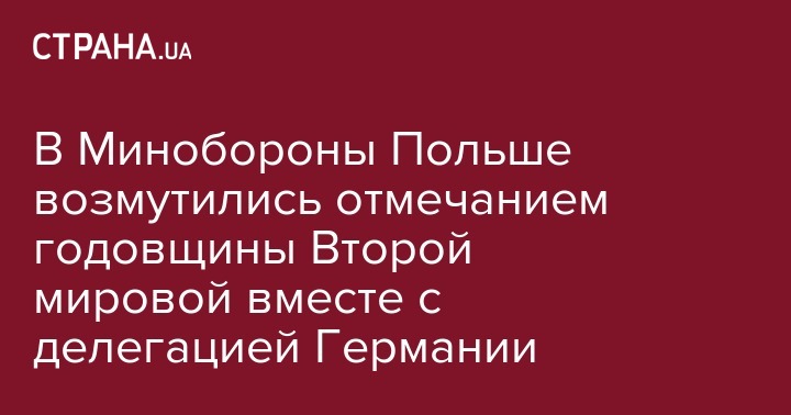 В Минобороны Польши возмутились из-за планируемого отмечания годовщины начала Второй мировой войны в Гданьске совместно с делегацией Германии. Глава ведомства Мариуш Блащак напомнил о преступлениях немецких оккупантов на территории страны. Его цитирует Rzeczpospolita.