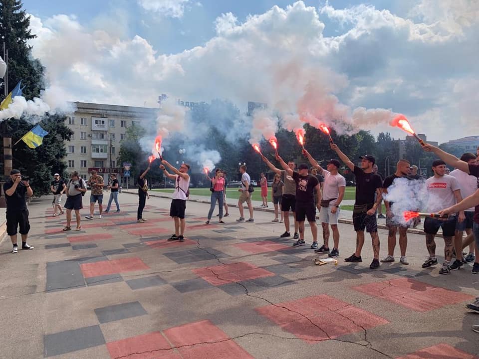 Участники акций протеста взрывали петарды, поджигали файеры и дымовые шашки. Также они установили на здании Нацполиции табличку с надписью "ул. Катерины Гандзюк, 4". По словам активистов, замначальника ГУНП пообещал ее не снимать.