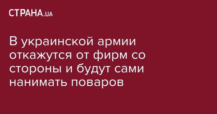 В украинской армии откажутся от фирм со стороны и будут сами нанимать поваров