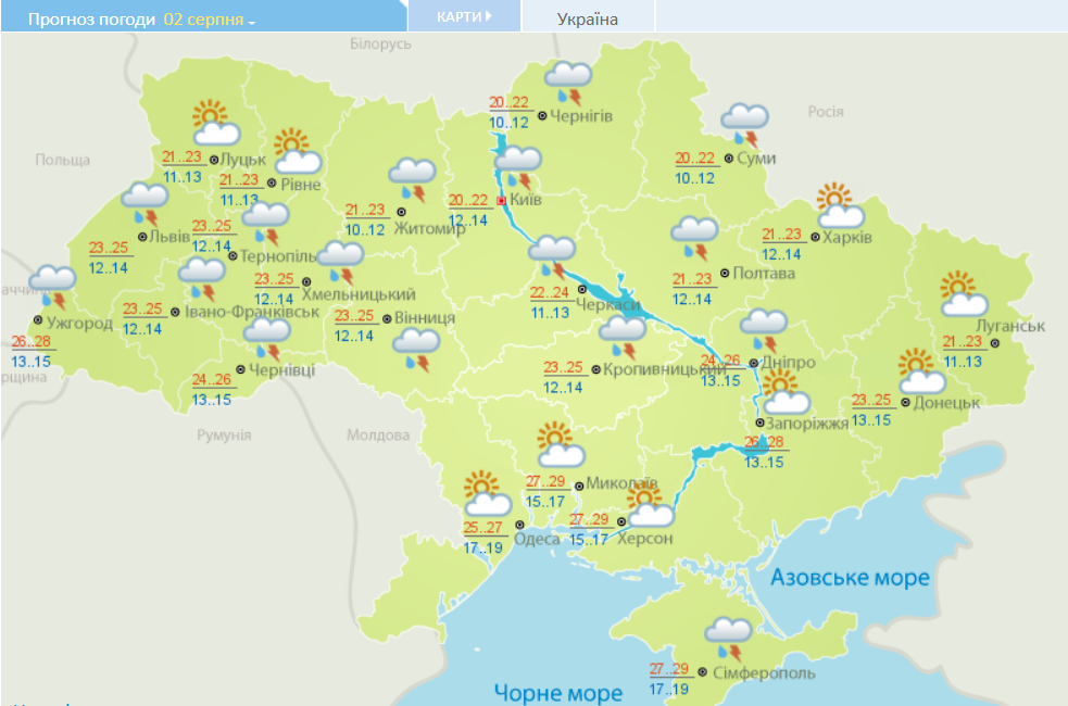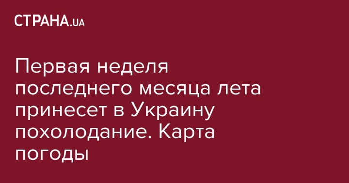 Первая неделя последнего месяца лета принесет в Украину похолодание. Карта погоды