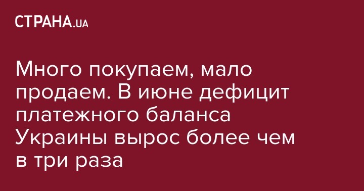 Дефицит текущего счета платежного баланса в июне составил 432 млн долларов, или 3,6% от ВВП (в июне прошлого года было 126 млн долларов, или 1,2% от ВВП). Об этом свидетельствуют данные НБУ.