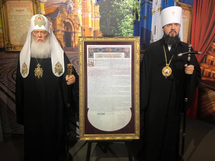 К слову, фигура Епифания в музее стоит рядом с фигурой Филарета. Между ними находится копия Томоса для Украины.