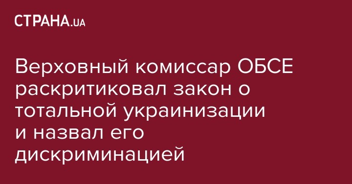 Верховный комиссар ОБСЕ раскритиковал закон о тотальной украинизации и назвал его дискриминацией