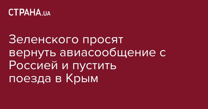На сайте президента Украины появились петиции, в которых главу государства просят восстановить авиасообщение с Российской Федерацией, а также пустить поезда на территорию Крыма. Соответствующие петиции №22/067008-еп и №22/066922-еп были опубликованы на официальном сайте 25 июля.