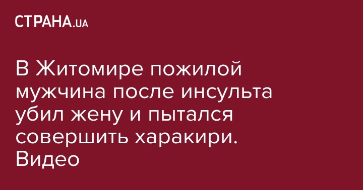 В Житомире пожилой мужчина после инсульта убил жену и пытался совершить харакири. Видео