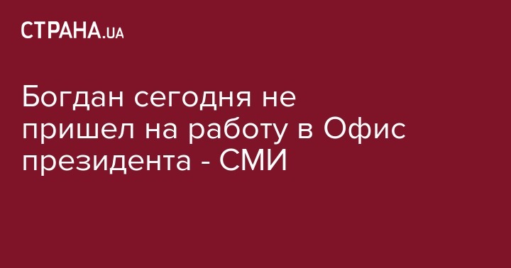 Глава Офиса президента Украины Глава Андрей Богдан, заявление об увольнении по собственному желанию которого распространили в СМИ 1 августа, не пришел в Офис президента на работу. Об этом сообщили в его приемной, пишут Украинские новости.