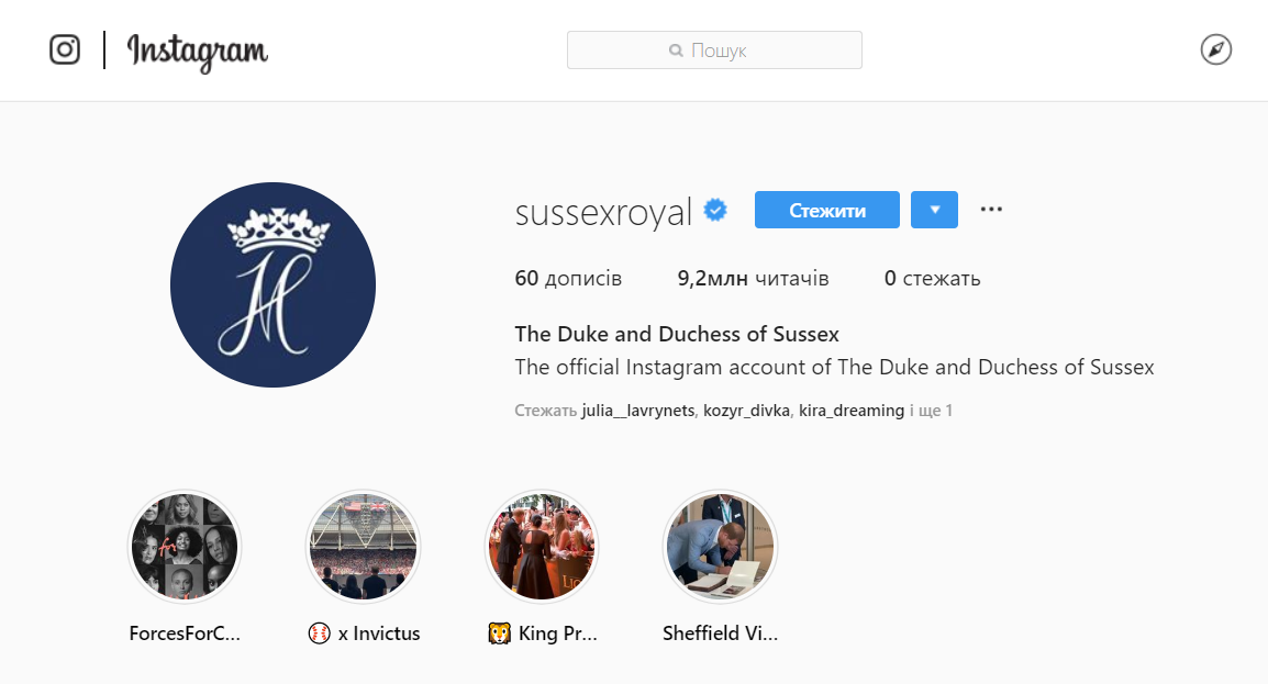 Британский принц Гарри и его жена Меган, которые еще в апреле этого года создали официальную страницу в Instagram герцогов Сассекских, отписались от всех в Instagram. В профиле исчезли все ранние подписки.