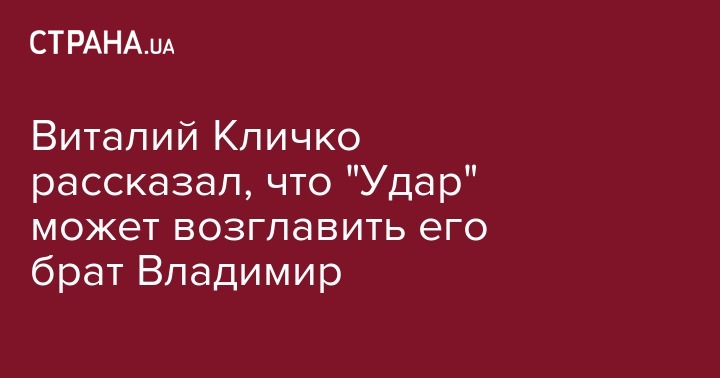Лидер партии УДАР, мэр Киева Виталий Кличко заявил, что политсилу может возглавить его брат Владимир. Об этом он сообщил в интервью "РБК-Украина".