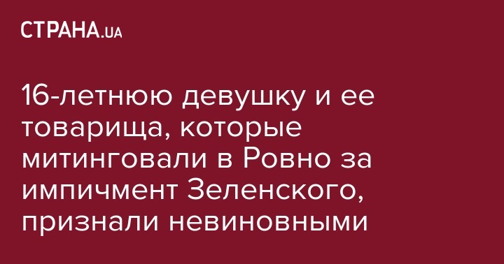 Ровенский апелляционный суд отменил решение суда первой инстанции, который 26 июня признал 16-летнюю Дарью Коцюрубу и 20-летнего Романа Филюка виновными в проведении несанкционированного митинга за импичмент президента. Об этом сообщает UA:Ровно.
