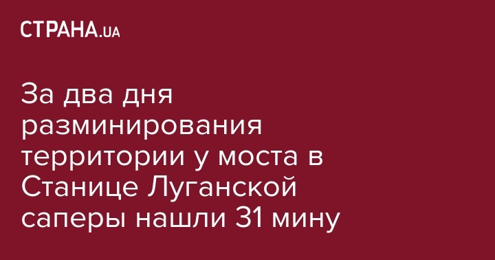По состоянию на 2 августа, всего через полтора дня после старта разминирования территории у аварийного моста через Северский Донец в Станице Луганской, спасатели нашли 31 мину. Об этом сообщает Департамент коммуникаций МВД Украины.