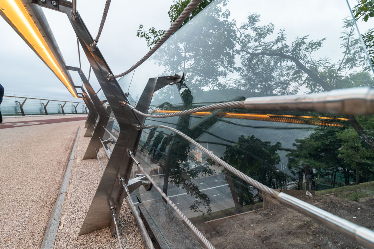 29 июля на скандально известном пешеходном мосту в одной секции треснуло боковое стекло. Его пообещали заменить за два дня.