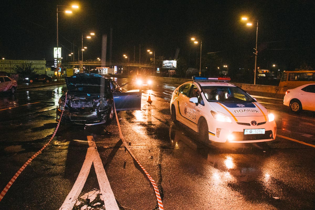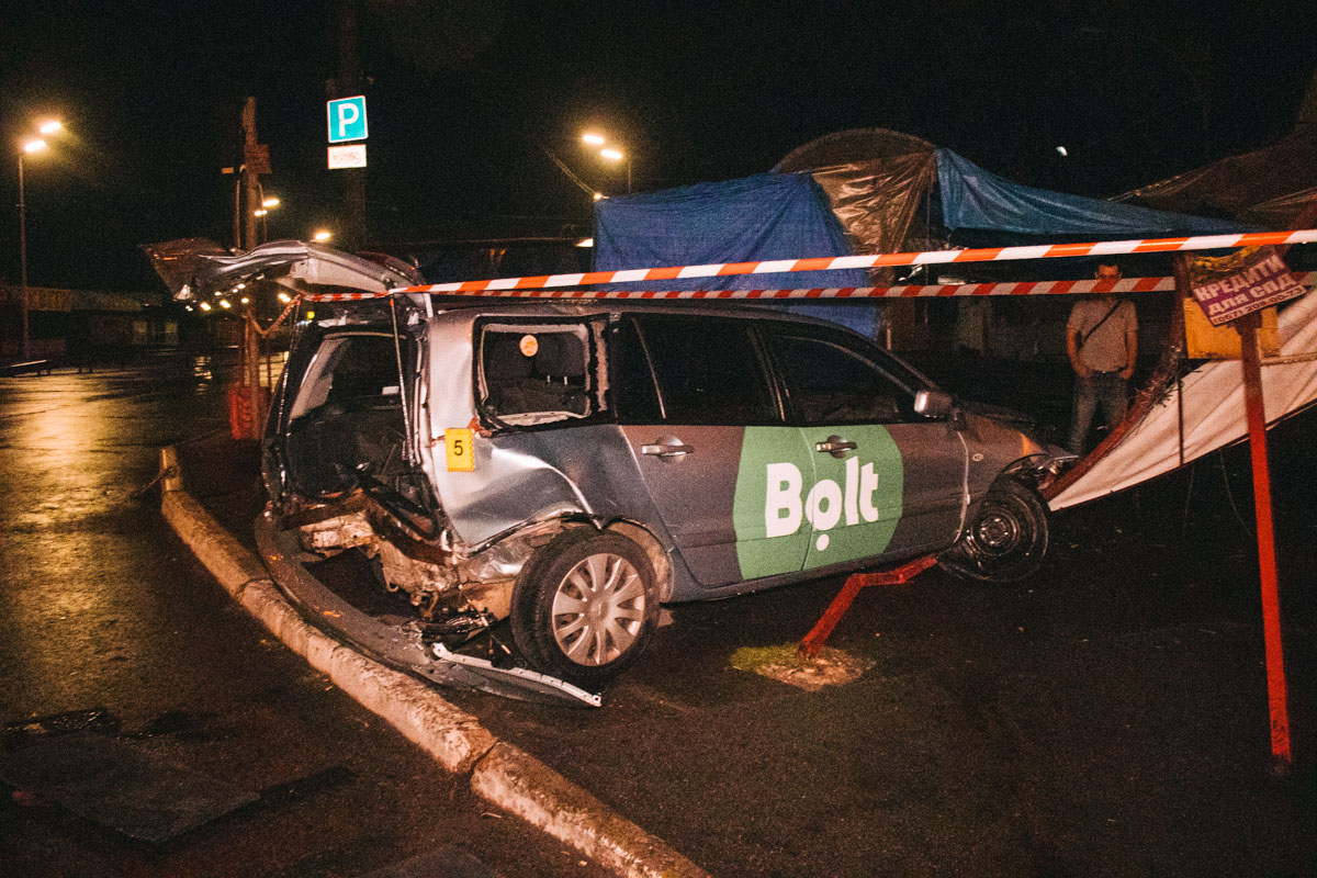 "По данным свидетеля происшествия, Toyota мчалась на скорости около 120 километров в час. Автомобиль несколько раз чуть не спровоцировал ДТП. В районе Троещинского рынка на проспекте Генерала Ватутина Camry влетела в едущий впереди автомобиль службы такси Bolt. От сильного удара такси влетело в ларек с шаурмой возле рынка. К счастью, пострадавший водитель отделался ушибами", – говорится в сообщении.