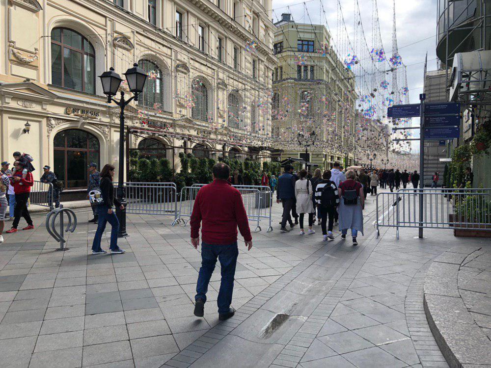 На одной из точек сбора - Лубянке - много полиции, но ОМОНа нет. По сравнению с утром установлено ограждение на главную туристическую улицу - Никольскую, чтобы митингующие (если они все-таки тут массово соберутся) туда не прошли.