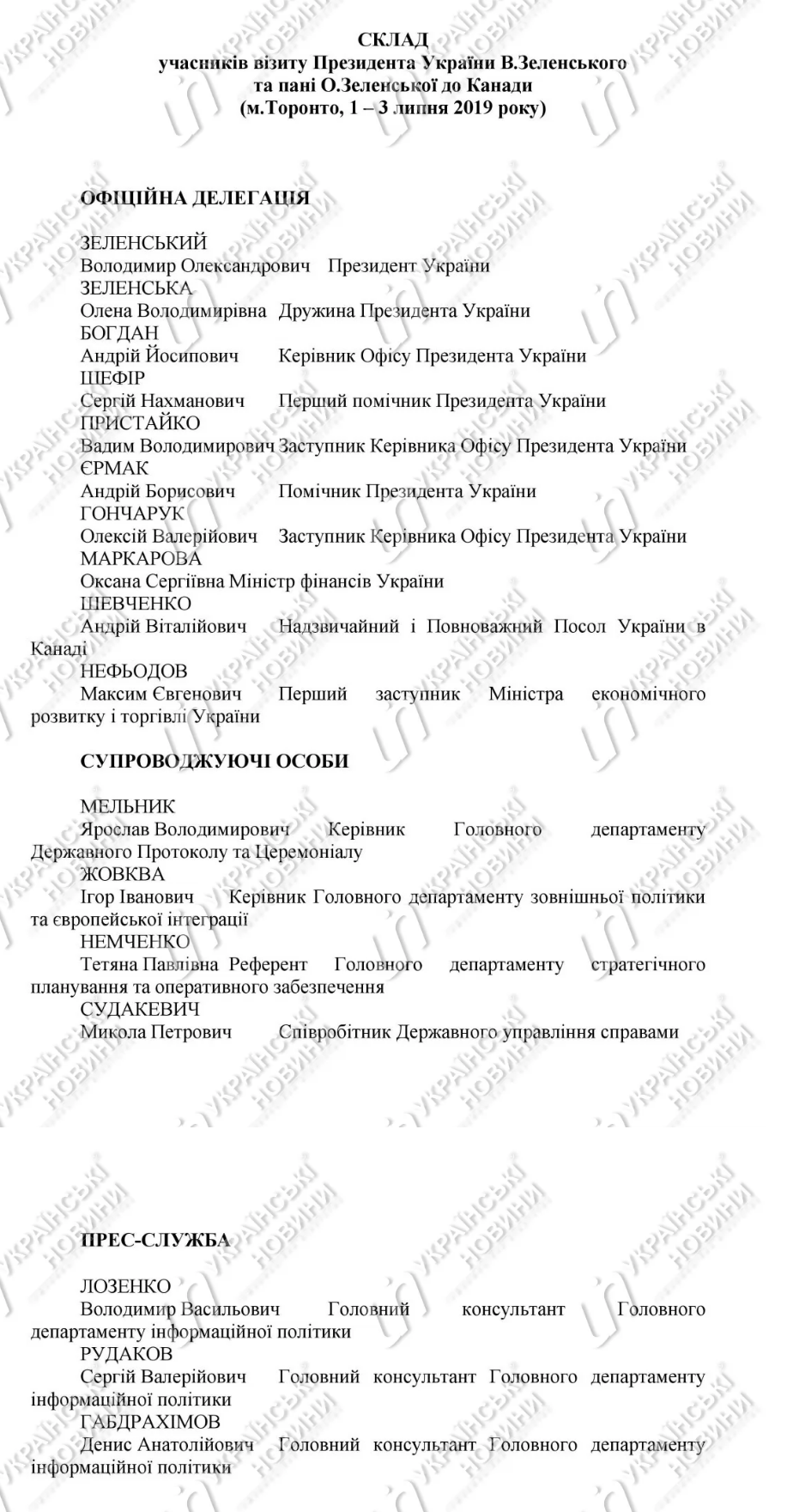 Также Зеленского сопровождали руководители трех департаментов Офиса, сотрудник государственного управления делами и три консультанта пресс-службы.