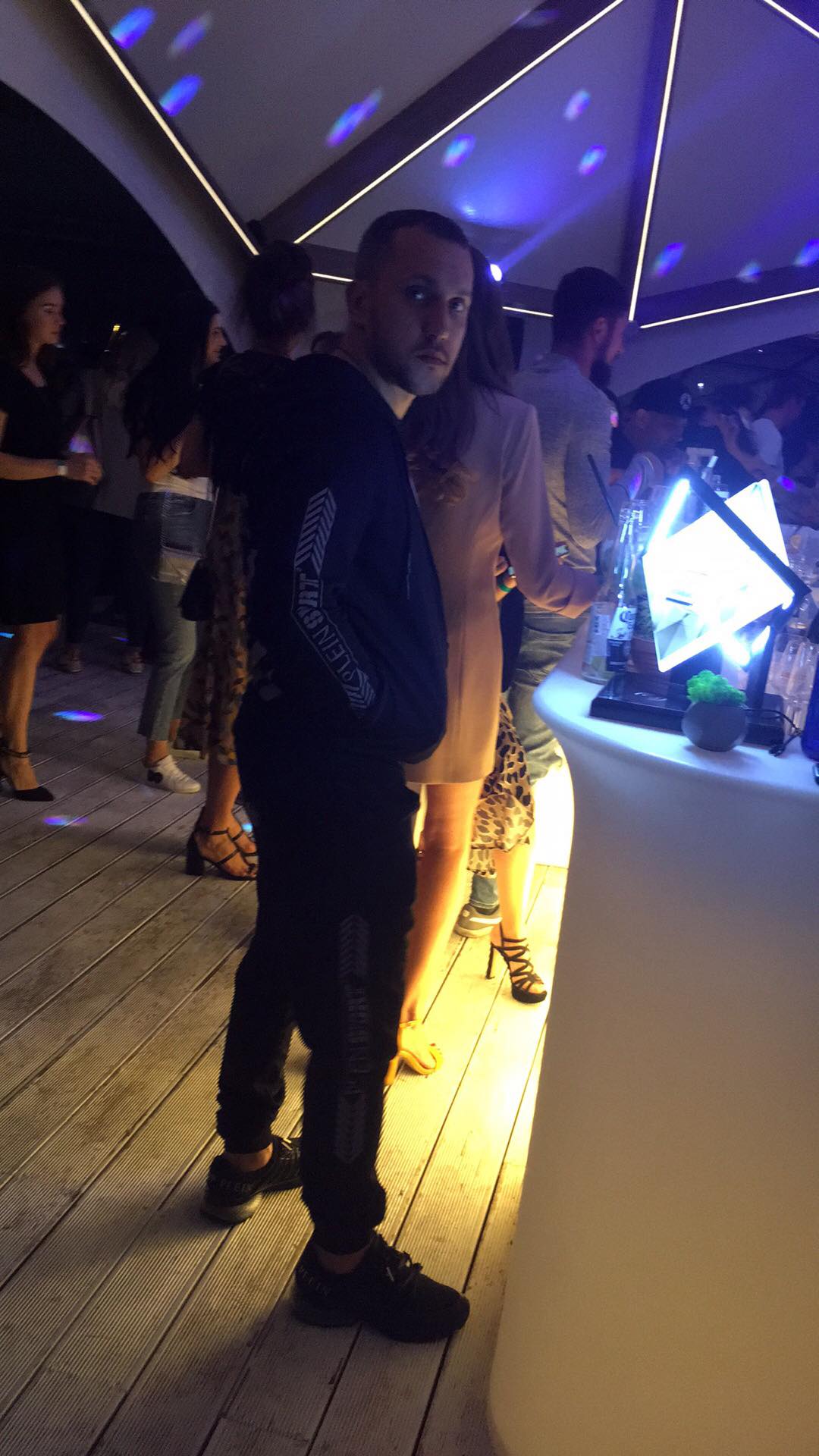 Как рассказали очевидцы, Линько не танцевал и в одиночестве пил коктейль "Мохито" на баре. Одет он был в черный спортивный костюм и в кроссовки фирмы Phillip Plein (они стоят около 10 тысяч гривен).