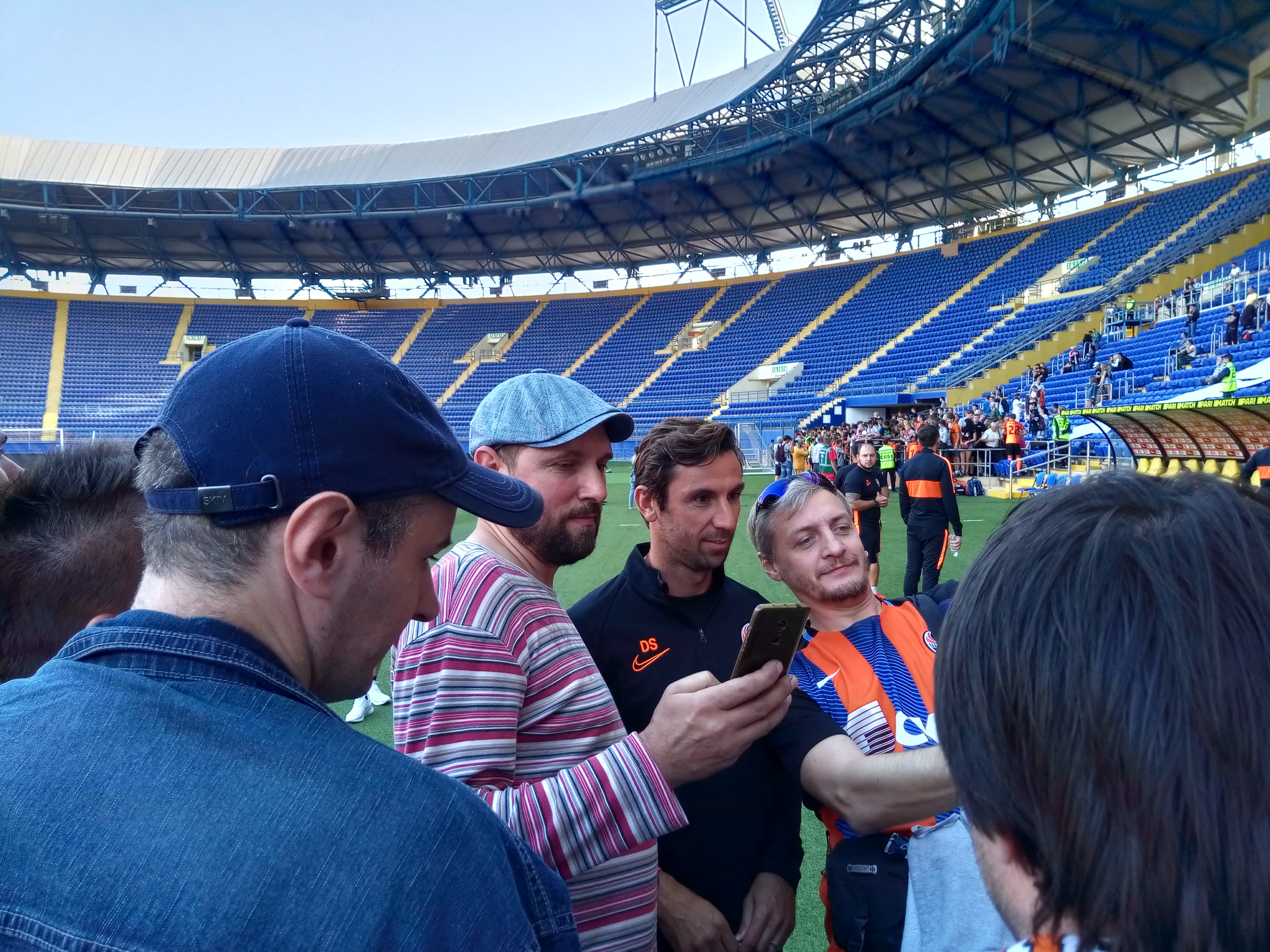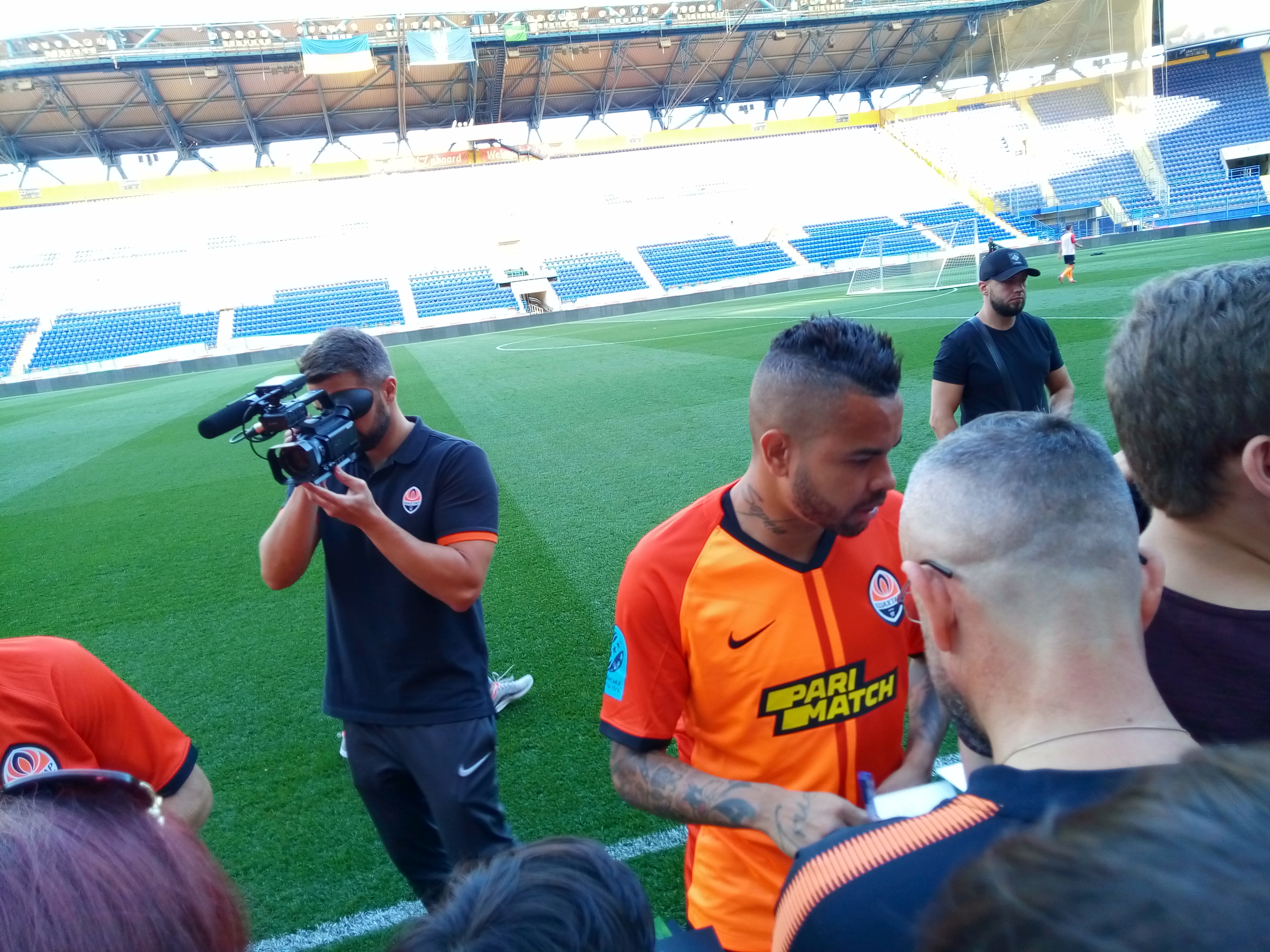 Любители футбола начали сходиться к стадиону "Металлист" к 16.30. Там, в фирменном магазине "горняков" выписывал автографы окончательно признанный легитимным Жуниор Мораес. К нашему бразильцу выстроилась солидная очередь.