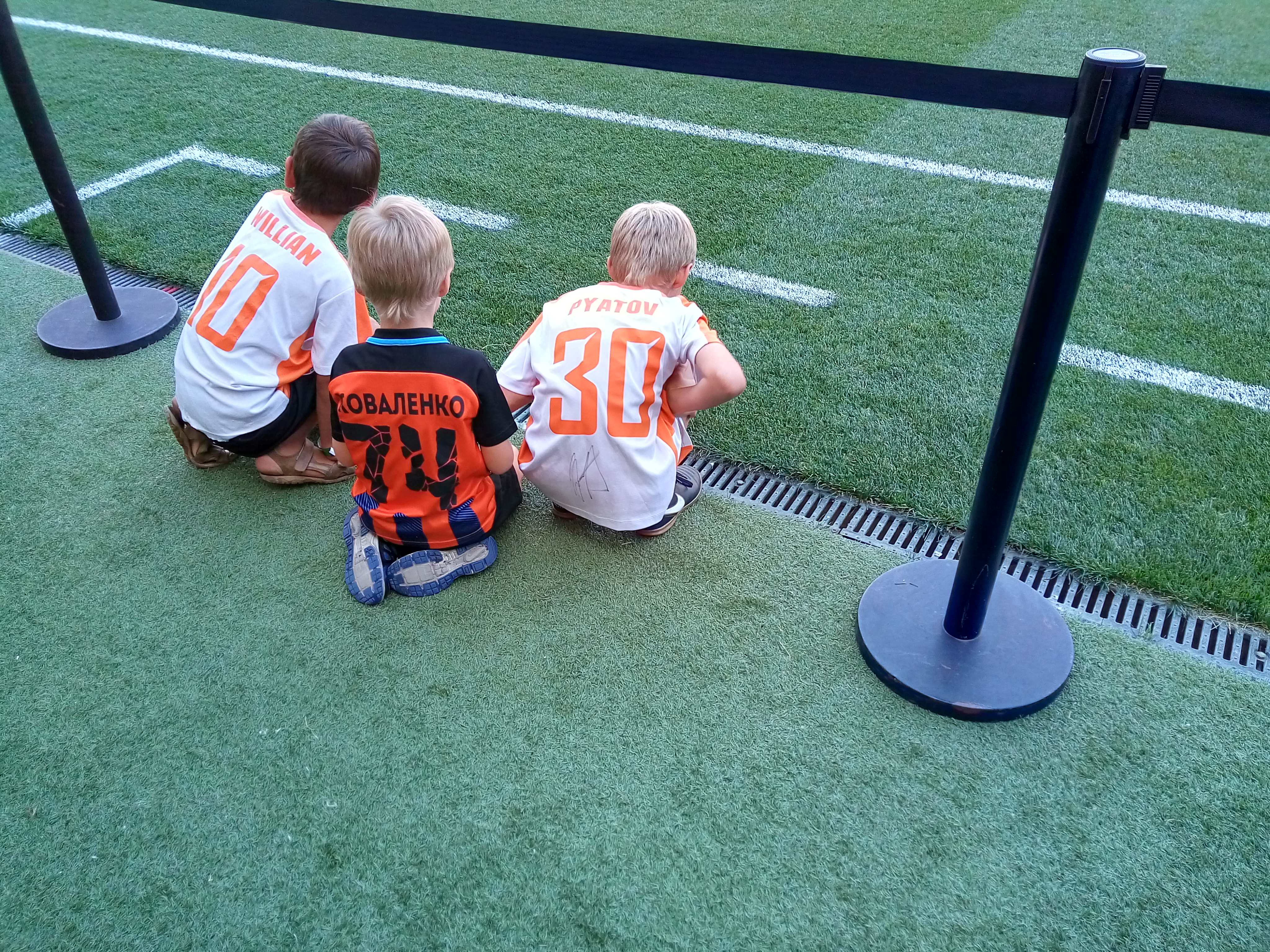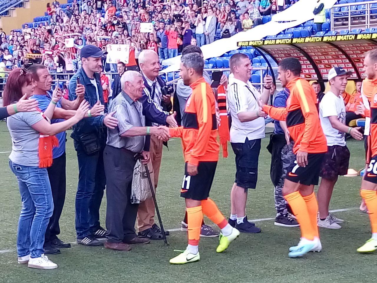 Не остались без внимания и другие гости клуба. Игроки забросили на трибуну с ними специальные футбольные мячи. Собравшимся на стадионе любителям футбола также наглядно показали новую игровую форму "горняков".