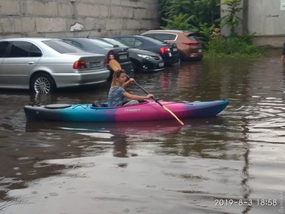 Сильнейший ливень, обрушившийся на Одессу, обернулся настоящим бедствием. На фотографиях с улиц города видно, что в некоторых районах проезжая часть превратилась в реку. Автомобили буквально плавали в воде на улицах Таирова, Черемушках и в центре города.