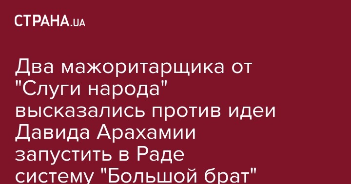 Блогер и писатель Макс Бужанский и журналист Александр Дубинский, выигравшие выборы в Раду по мажоритарным округам от "Слуга народа", выступили против внедрения системы "Большой брат", которую предложил ввести их однопартиеец Дави Арахамия. Об этом оба заявили в своих блогах на Facebook и YouTube.