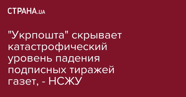 Национальный союз журналистов Украины (НСЖУ) выступил с заявлением, в котором обвинил руководство "Укрпошты" в том, что там скрывают информацию о реальных тиражах массовых газет.