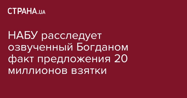 НАБУ расследует озвученный Богданом факт предложения 20 миллионов взятки
