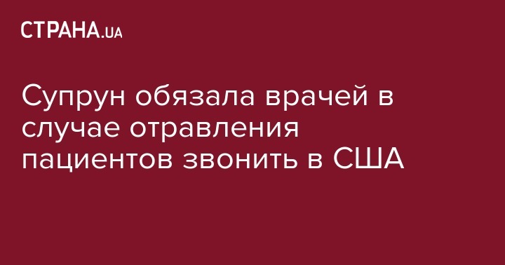 В случае отравления пациентов исполняющая обязанности министра здравоохранения Ульяна Супрун обязала медиков звонить по номеру телефона (800) 222-122, который зарегистрирован в Соединенных Штатах. Об этом сообщил на своей странице в Facebook журналист Евгений Куксин.