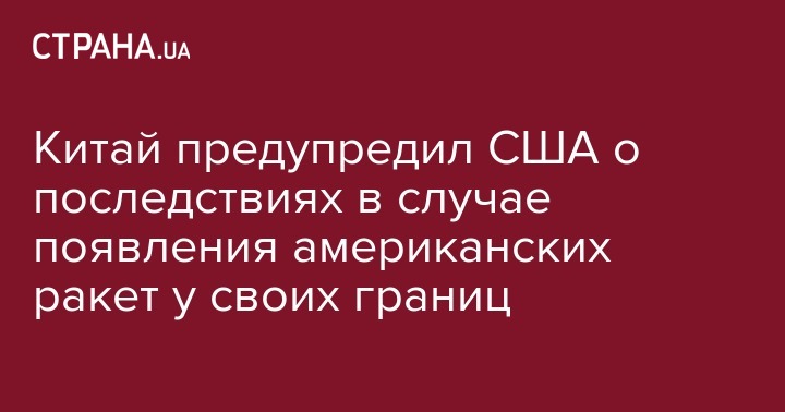 Китай предупредил США о последствиях в случае появления американских ракет у своих границ
