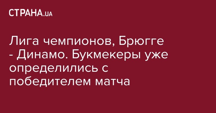 Лига чемпионов, Брюгге - Динамо. Букмекеры уже определились с победителем матча