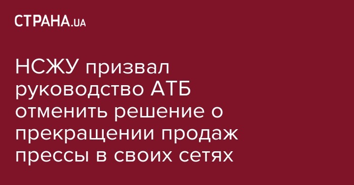 "Не так давно стало известно о решении руководства торговой сети АТБ прекратить продажу печатной продукции. Этот факт вызывает беспокойство НСЖУ и издателей прессы, поскольку это еще один серьезный удар по отечественным СМИ на фоне сокращения традиционных систем распространения прессы.