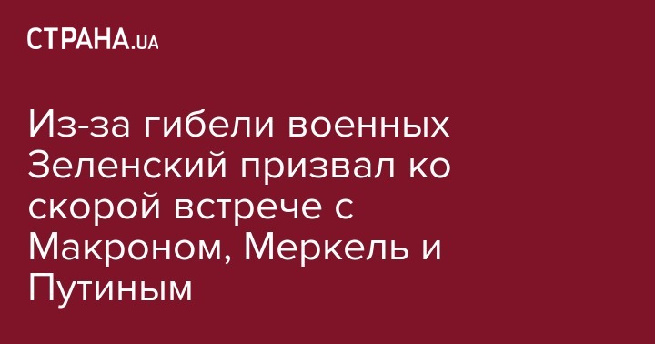 "…я призываю лидеров стран-участниц Нормандского переговорного формата - Эмманюэля Макрона, Ангелу Меркель и Владимира Путина - как можно быстрее собраться для возобновления переговоров", - написал Зеленский.